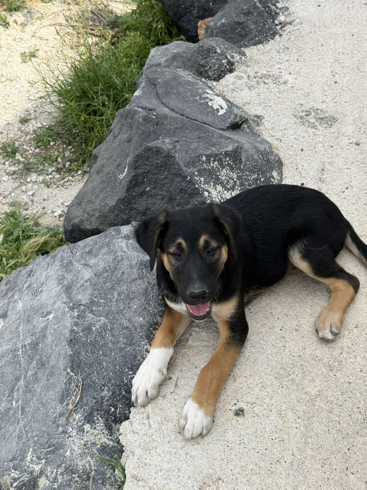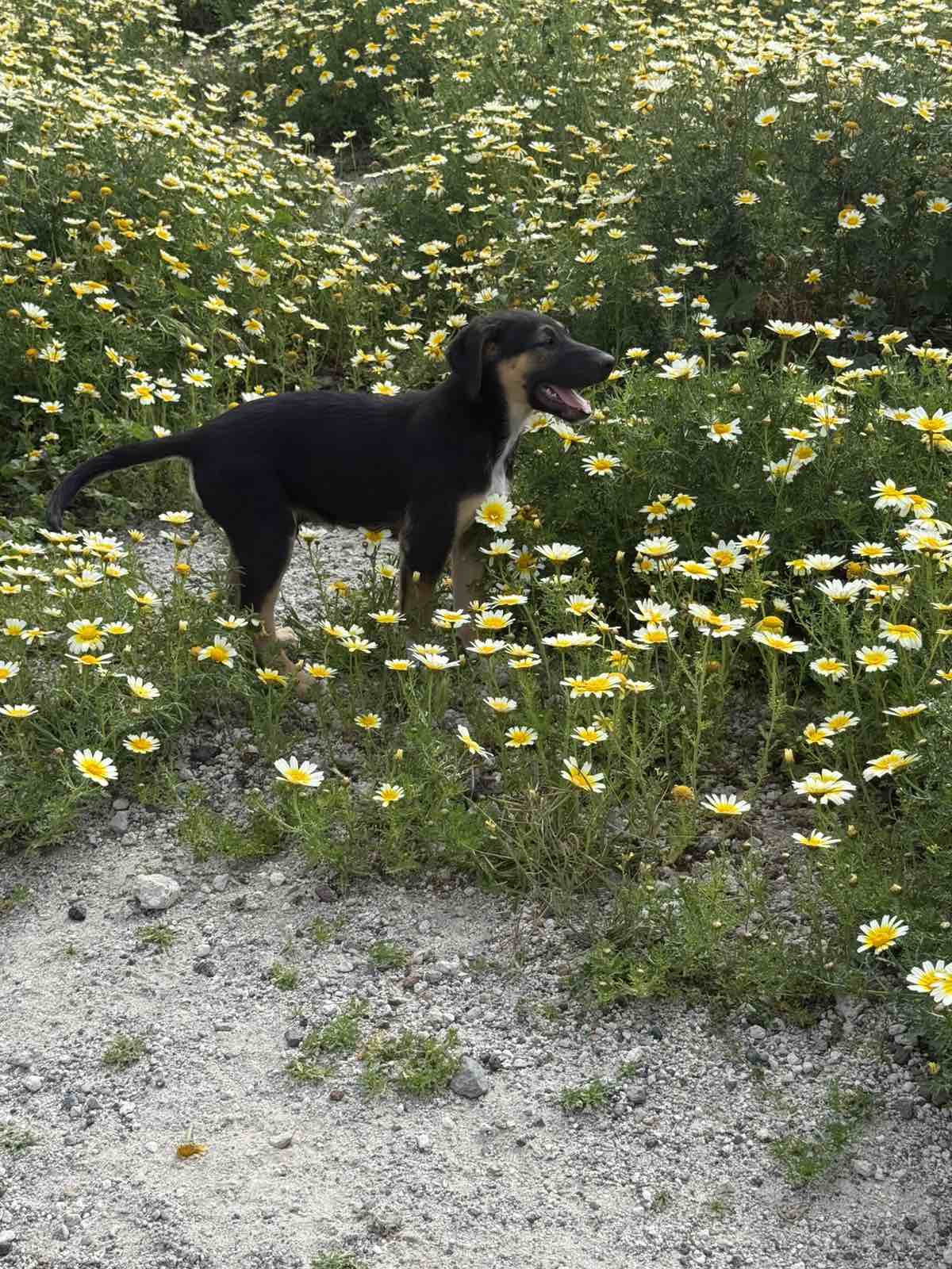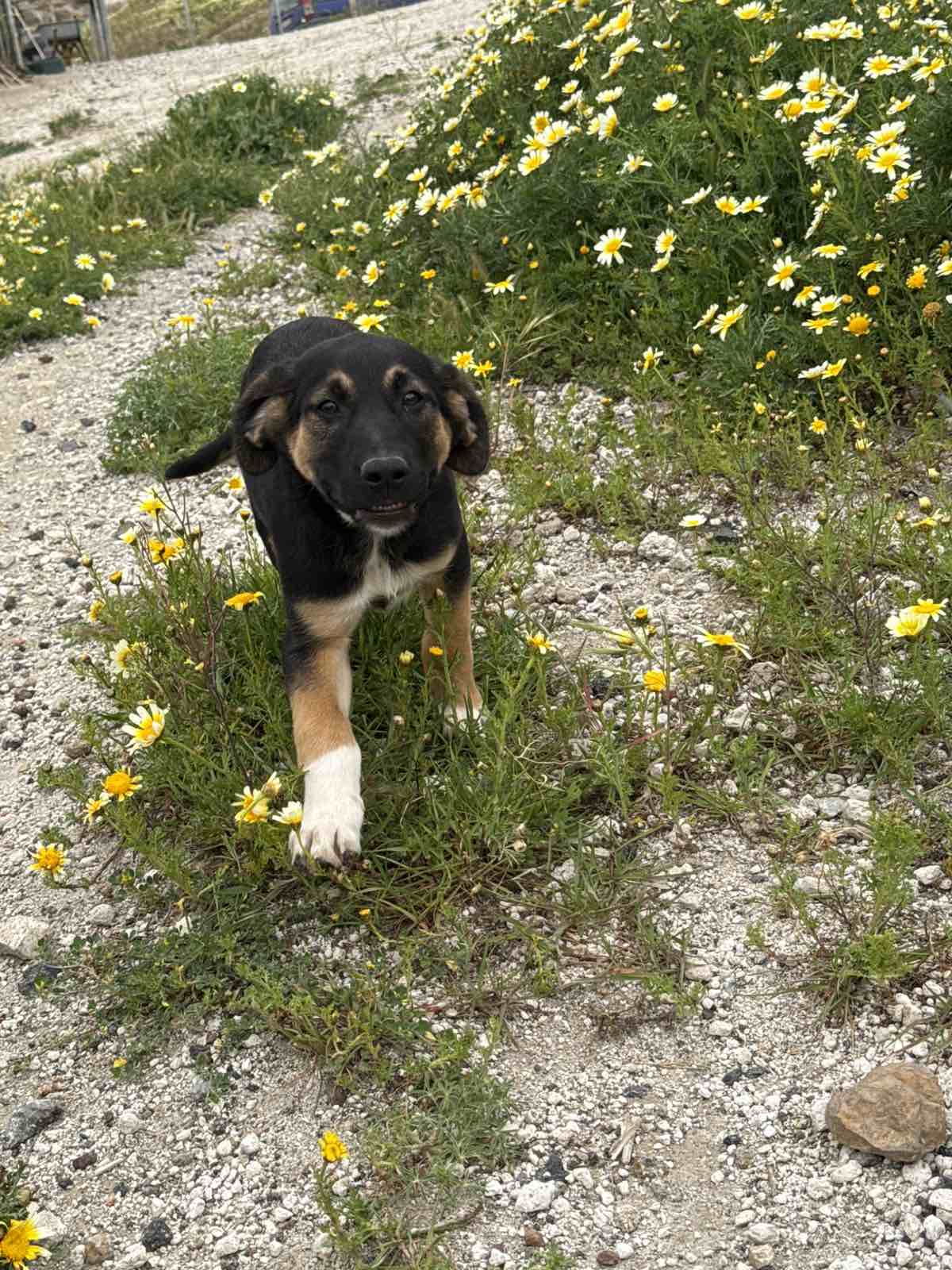 Ο Κάγιο είναι ένα κουταβάκι περίπου 3,5 μηνών, γεμάτο ενέργεια, περιέργεια και αθωότητα. Βρέθηκε μαζί με τα αδερφάκια του σε ένα χωράφι στην εξοχή και μεταφέρθηκε στο καταφύγιό μας, καθώς η παρουσία τους κοντά σε δρόμο τα έθετε σε σοβαρό κίνδυνο. Από πολύ μικρός δείχνει έναν εξαιρετικά κοινωνικό και φιλικό χαρακτήρα, τόσο με ανθρώπους όσο και με άλλα σκυλιά. Είναι παιχνιδιάρης, χαρούμενος και εξερευνητικός, περπατά μέσα στο καταφύγιο σαν να ανακαλύπτει τον κόσμο για πρώτη φορά, χωρίς φόβο και με πολλή εμπιστοσύνη. Ο Κάγιο θα γίνει ένας μεσαίου προς μεγάλου μεγέθους σκύλος, περίπου 25–30 κιλά, και αναζητά μια οικογένεια που θα του δώσει την αγάπη και τη σταθερότητα που χρειάζεται για να μεγαλώσει σωστά και ευτυχισμένα.