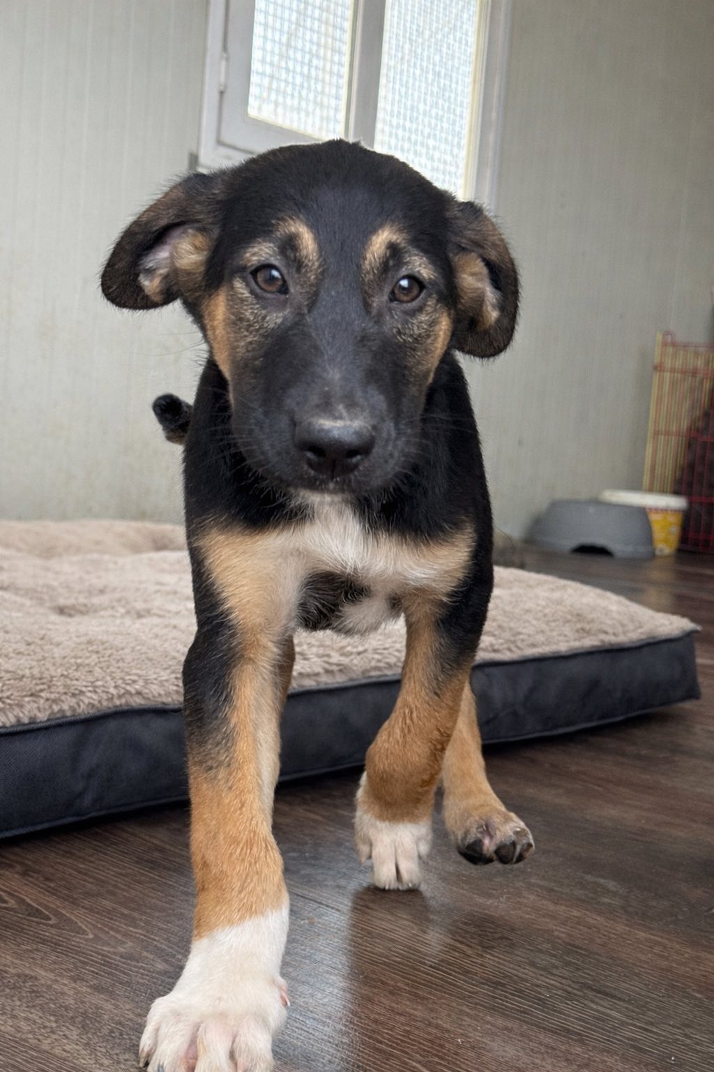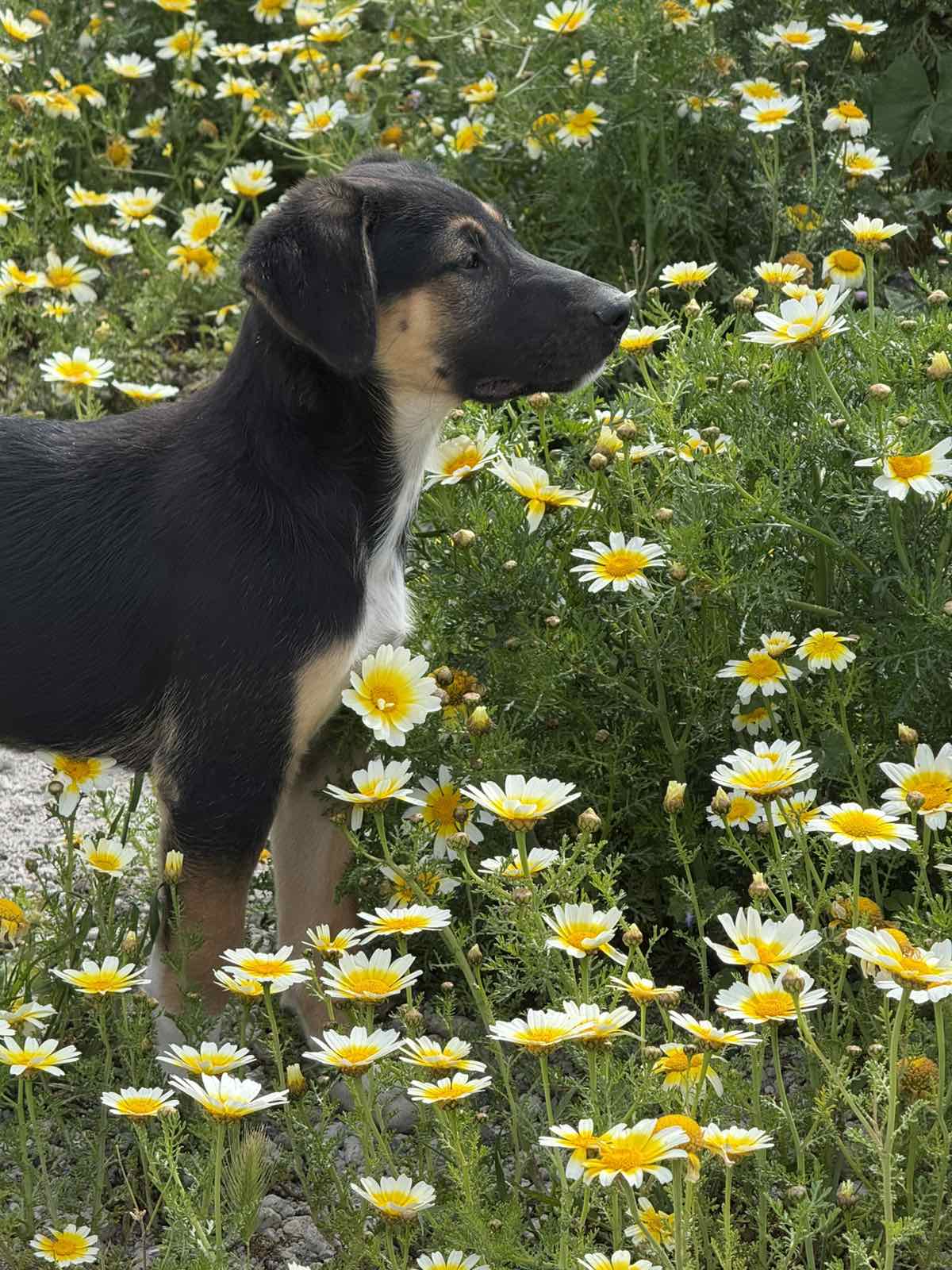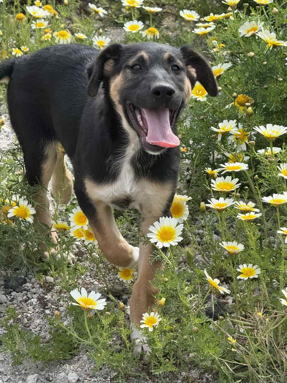Ο Κάγιο είναι ένα κουταβάκι περίπου 3,5 μηνών, γεμάτο ενέργεια, περιέργεια και αθωότητα. Βρέθηκε μαζί με τα αδερφάκια του σε ένα χωράφι στην εξοχή και μεταφέρθηκε στο καταφύγιό μας, καθώς η παρουσία τους κοντά σε δρόμο τα έθετε σε σοβαρό κίνδυνο. Από πολύ μικρός δείχνει έναν εξαιρετικά κοινωνικό και φιλικό χαρακτήρα, τόσο με ανθρώπους όσο και με άλλα σκυλιά. Είναι παιχνιδιάρης, χαρούμενος και εξερευνητικός, περπατά μέσα στο καταφύγιο σαν να ανακαλύπτει τον κόσμο για πρώτη φορά, χωρίς φόβο και με πολλή εμπιστοσύνη. Ο Κάγιο θα γίνει ένας μεσαίου προς μεγάλου μεγέθους σκύλος, περίπου 25–30 κιλά, και αναζητά μια οικογένεια που θα του δώσει την αγάπη και τη σταθερότητα που χρειάζεται για να μεγαλώσει σωστά και ευτυχισμένα.