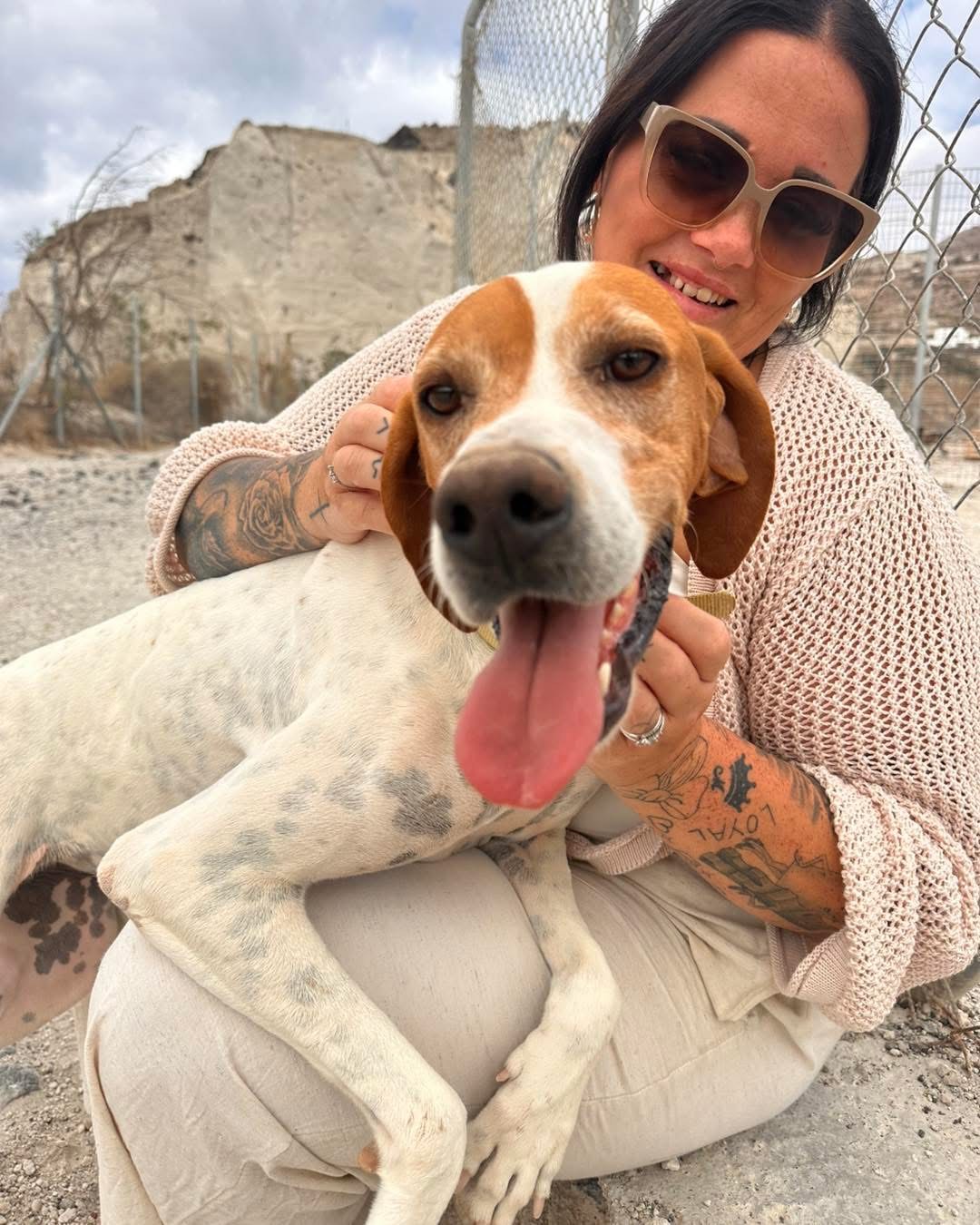 Η Μαρίνα βρέθηκε τον Ιούνιο του 2025 να περιφέρεται στον Πύργο Σαντορίνης, φανερά αδυνατισμένη και ταλαιπωρημένη. Στην προσπάθεια μας να την ταίσουμε, εκείνη μπήκε βιαστικά στο αυτοκίνητο και κάθισε στην θέση του συνοδηγού. Ήταν φανερό ότι αυτό που της έλειπε περισσότερο από την τροφή ήταν η στοργή. Η Μαρίνα είναι ένα φιλικό και κοινωνικό σκυλί με όλη την ενέργεια και την ζωντάνια της ράτσας πόιντερ -στην οποία ανήκει-Στο καταφύγιο διανύει απίστευτα χιλιόμετρα τρέχοντας από την μία άκρη στην άλλη στον χώρο που ζει, ενώ δεν παραλείπει να πηδάει επάνω μας και να μας δείχνει πόσο πολύ της αρέσουν τα χάδια μας. Ψάχνουμε έναν άνθρωπο που να μην ενοχλείται από την αστείρευτη ενέργεια της αλλά ούτε και από την συνεχόμενη ανάγκη της για αγκαλιές και θα μπορέσει να της προσφέρει ένα σπίτι και όσα δεν είχε ποτέ.